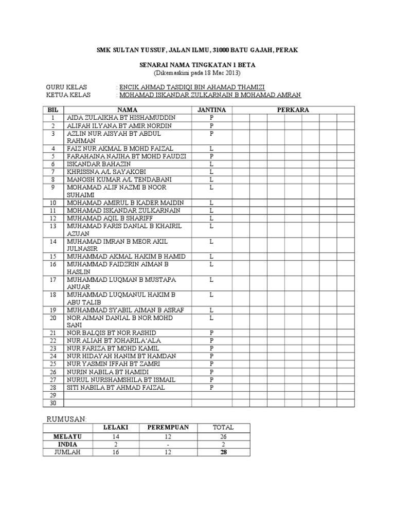 Senarai Nama Pelajar Tingkatan 1 Kelas Peralihan Tahun 2017 Smk Taman Sea